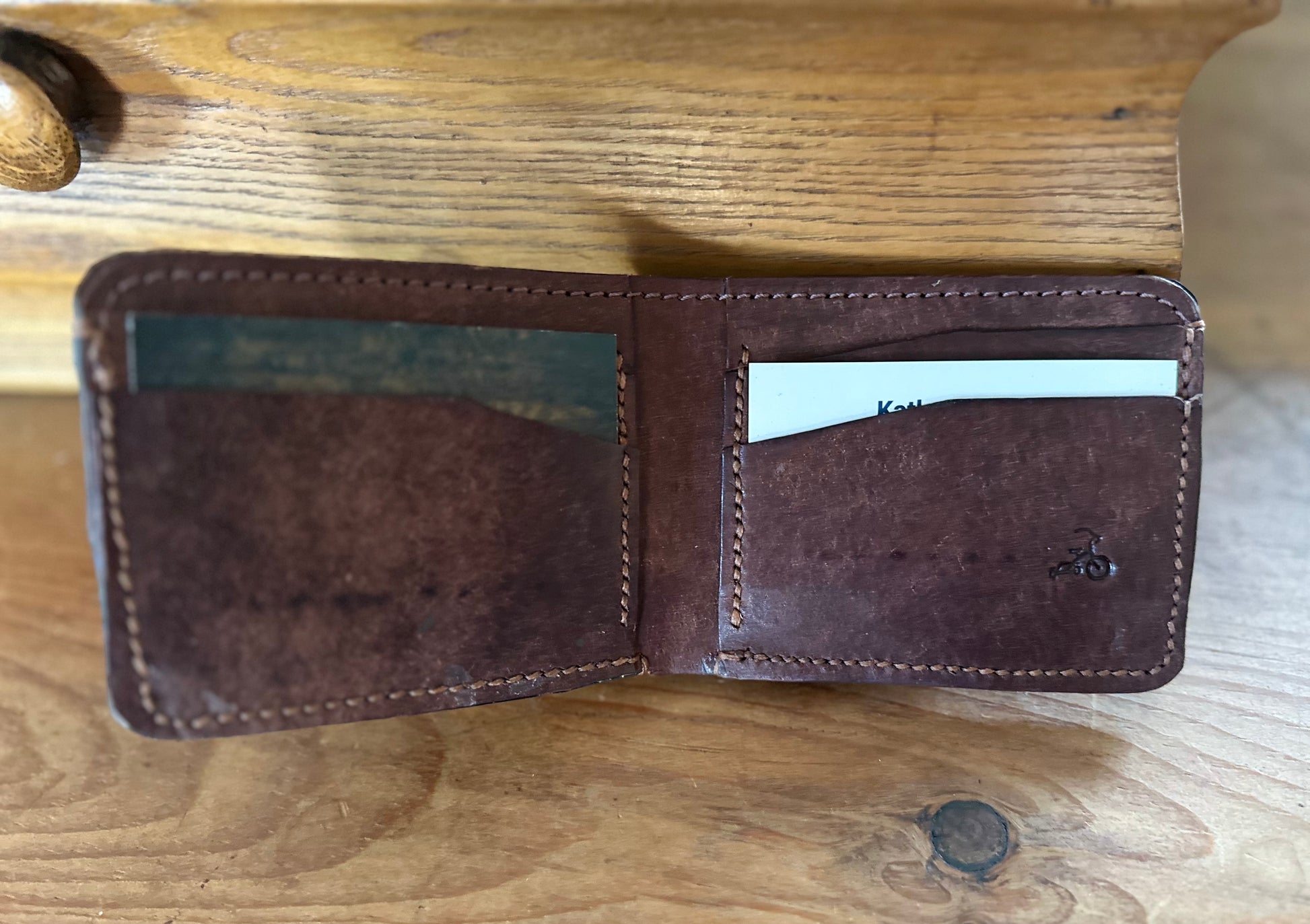 Off the bench and available - Brown Gator & Brown Pueblo. This skin is remarkable in its texture… edgy, yet soft. This bi-fold has a ton of space for cards, two hidden pockets and a bill garage. Exterior is broken own alligator and interior is made from tobacco Pueblo leather from Italy and hand stitched with tobacco Tiger, waxed thread.